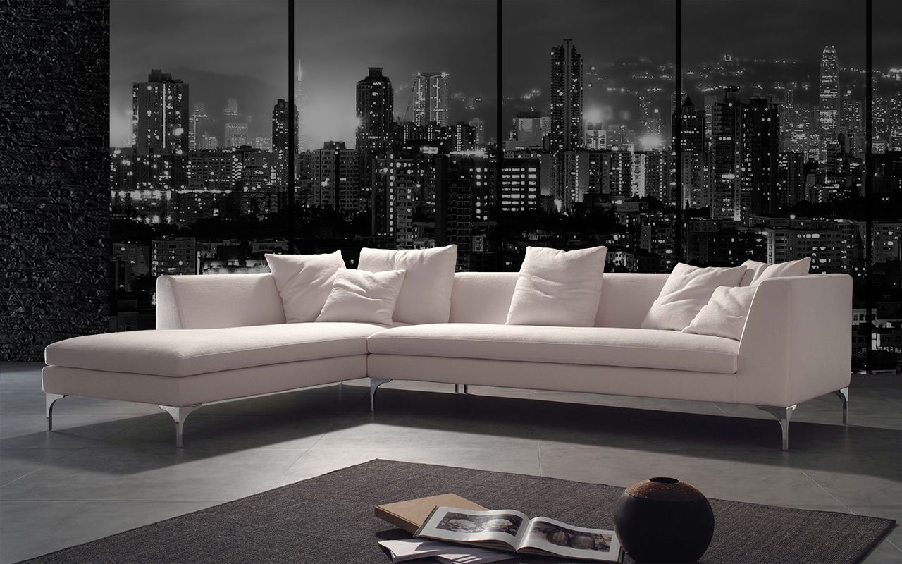 Divano dal design moderno e dalla seduta molto comoda. Materiali di alto pregio. Imbottito a scomparti in Piumafib, una speciale miscela ipoallergenica di vera piuma e fibra di poliestere siliconata cava. Inserto per cuscino schienale in poliuretano.