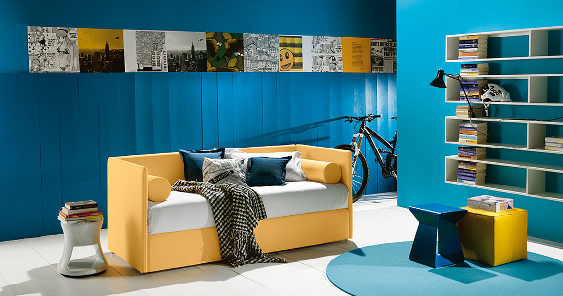 Ideale soluzione per camerette o camere-studio. Permette di avere un comodo letto per tutti i giorni che può essere "travestito" da divano. Disponibile nella versione salvaspazio (con un cassettone nella parte sottostante) o nella versione doppio letto (con un secondo letto estraibile)